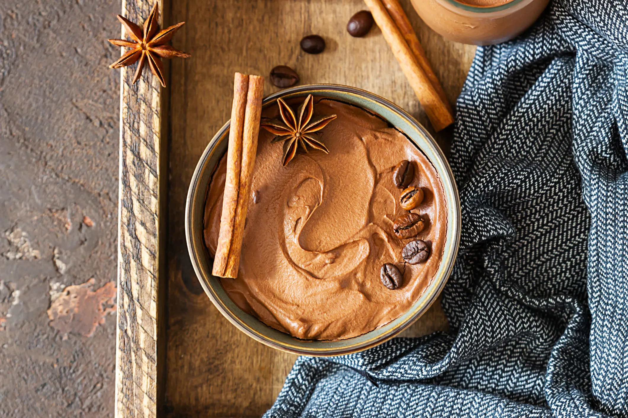 Schokolade ist ein fester Wert, wenn es um opulente Desserts geht. Möchten Sie ein besonderes Abendessen veranstalten und Ihre Familie und Freunde nach dem Hauptgang mit einem speziellen Dessert verwöhnen? Dann gehen Sie mit diesem Rezept für eine Gewürz-Schokolademousse auf Nummer sicher. Das Original, eine aufgeschlagene und luftige Mousse, stammt aus Frankreich im 18. Jahrhundert und gilt als perfekte Balance zwischen Leichtigkeit und Opulenz. Mit der Zugabe von etwas Ingwer und Zimt verwandeln Sie diese traditionelle Mousse in ein spektakuläres, zeitgemässes Schokoladedessert. Das wunderbar warme, würzige Geschmacksduo verleiht der Schokolademousse das gewisse Extra und sorgt dafür, dass kein Löffel übrig bleibt.